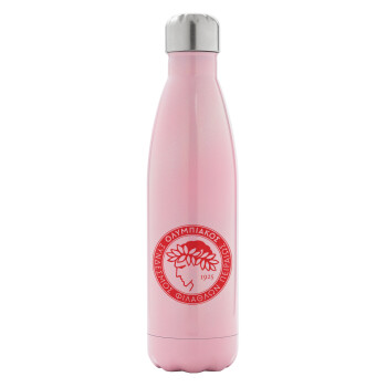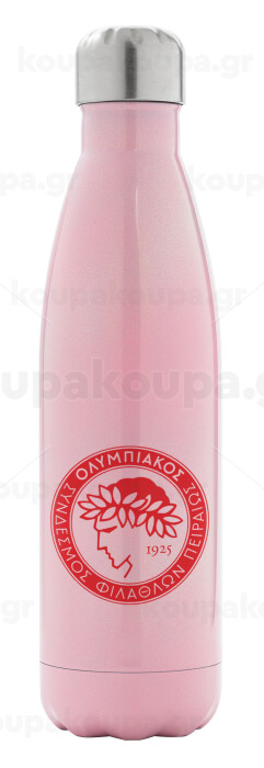 Ολυμπιακός, Μεταλλικό παγούρι θερμός Ροζ Ιριδίζον (Stainless steel), διπλού τοιχώματος, 500ml