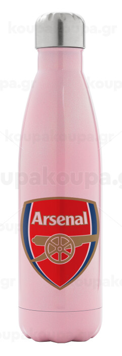 Arsenal, Μεταλλικό παγούρι θερμός Ροζ Ιριδίζον (Stainless steel), διπλού τοιχώματος, 500ml