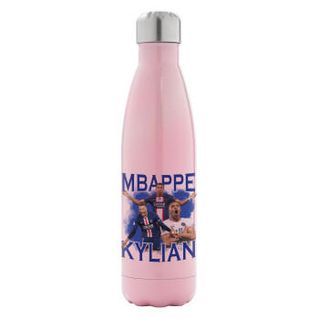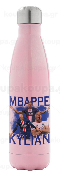 Kylian mbappe, Μεταλλικό παγούρι θερμός Ροζ Ιριδίζον (Stainless steel), διπλού τοιχώματος, 500ml
