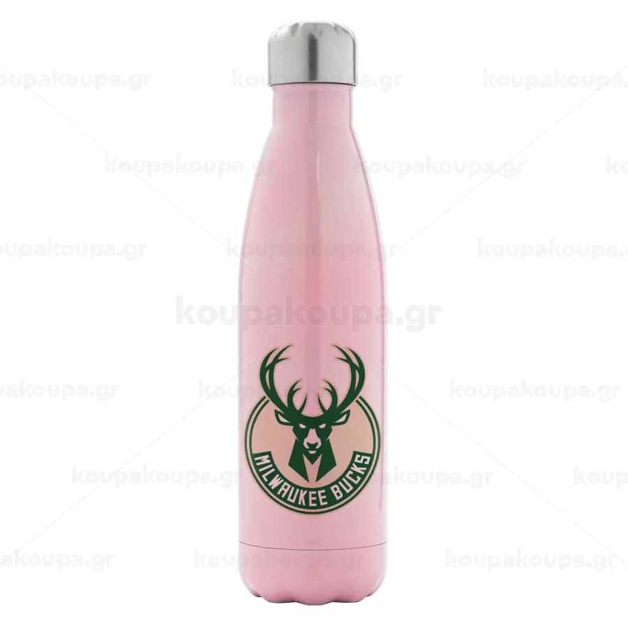 Milwaukee bucks, Μεταλλικό παγούρι θερμός Ροζ Ιριδίζον (Stainless steel), διπλού τοιχώματος, 500ml