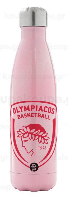 Olympiacos B.C., Μεταλλικό παγούρι θερμός Ροζ Ιριδίζον (Stainless steel), διπλού τοιχώματος, 500ml