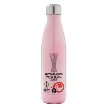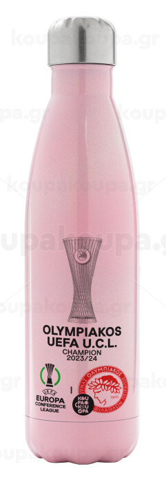 Ολυμπιακός νικητής UEFA Europa Conference League Champion 2023/24, Μεταλλικό παγούρι θερμός Ροζ Ιριδίζον (Stainless steel), διπλού τοιχώματος, 500ml