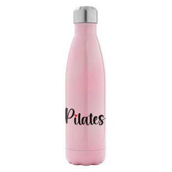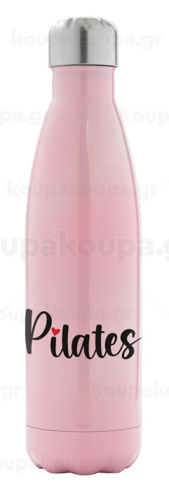 Pilates love, Μεταλλικό παγούρι θερμός Ροζ Ιριδίζον (Stainless steel), διπλού τοιχώματος, 500ml