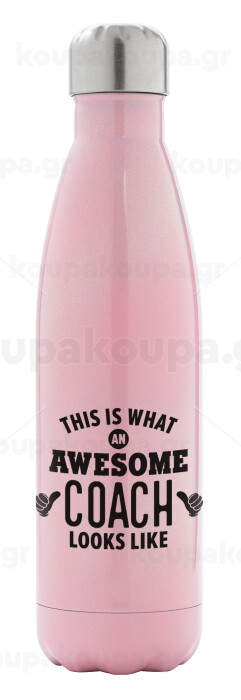 This is what an awesome COACH looks like!, Μεταλλικό παγούρι θερμός Ροζ Ιριδίζον (Stainless steel), διπλού τοιχώματος, 500ml