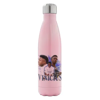 Vinicius Junior, Μεταλλικό παγούρι θερμός Ροζ Ιριδίζον (Stainless steel), διπλού τοιχώματος, 500ml
