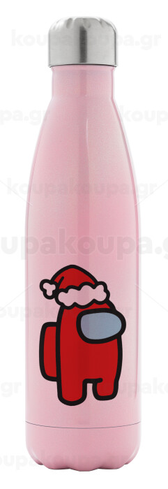 Among US Santa, Μεταλλικό παγούρι θερμός Ροζ Ιριδίζον (Stainless steel), διπλού τοιχώματος, 500ml