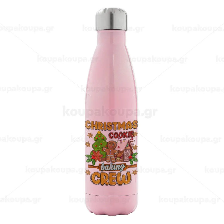 Christmas Cookie Baking Crew, Μεταλλικό παγούρι θερμός Ροζ Ιριδίζον (Stainless steel), διπλού τοιχώματος, 500ml