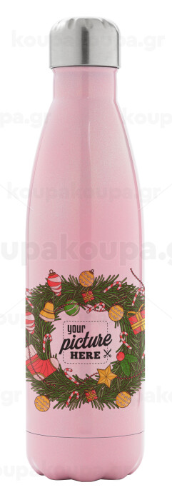 PHOTO Christmas twitch, Μεταλλικό παγούρι θερμός Ροζ Ιριδίζον (Stainless steel), διπλού τοιχώματος, 500ml