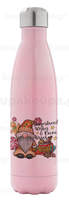 Gingerbread Wishes, Μεταλλικό παγούρι θερμός Ροζ Ιριδίζον (Stainless steel), διπλού τοιχώματος, 500ml