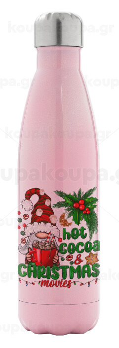 Hot cocoa and Christmas movies, Μεταλλικό παγούρι θερμός Ροζ Ιριδίζον (Stainless steel), διπλού τοιχώματος, 500ml