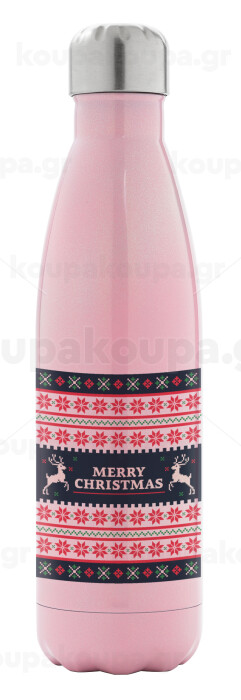Merry Christmas Vintage, Μεταλλικό παγούρι θερμός Ροζ Ιριδίζον (Stainless steel), διπλού τοιχώματος, 500ml