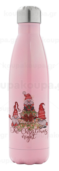 Oh Christmas Night, Μεταλλικό παγούρι θερμός Ροζ Ιριδίζον (Stainless steel), διπλού τοιχώματος, 500ml