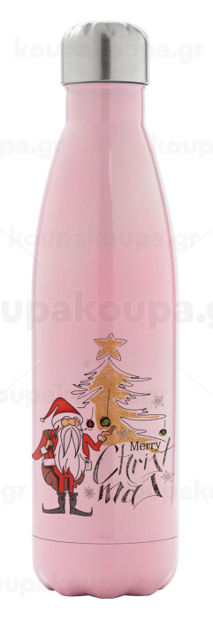 Santa Claus gold, Μεταλλικό παγούρι θερμός Ροζ Ιριδίζον (Stainless steel), διπλού τοιχώματος, 500ml