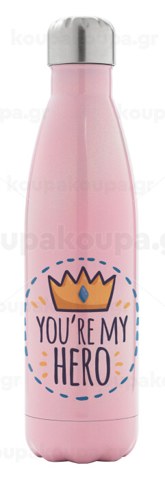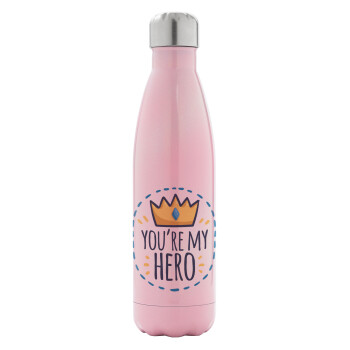 Dad, you are my hero!, Μεταλλικό παγούρι θερμός Ροζ Ιριδίζον (Stainless steel), διπλού τοιχώματος, 500ml