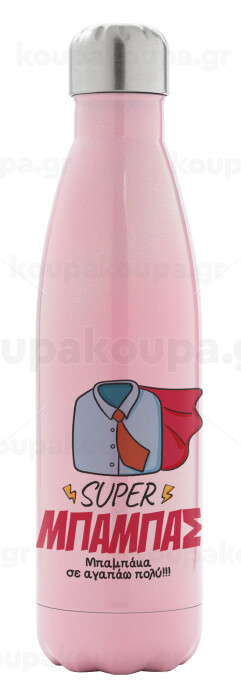 SUPER ΜΠΑΜΠΑΣ, Μεταλλικό παγούρι θερμός Ροζ Ιριδίζον (Stainless steel), διπλού τοιχώματος, 500ml