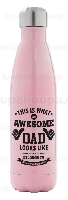 This is what an Awesome DAD looks like, Μεταλλικό παγούρι θερμός Ροζ Ιριδίζον (Stainless steel), διπλού τοιχώματος, 500ml