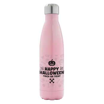 Happy Halloween pumpkin, Μεταλλικό παγούρι θερμός Ροζ Ιριδίζον (Stainless steel), διπλού τοιχώματος, 500ml