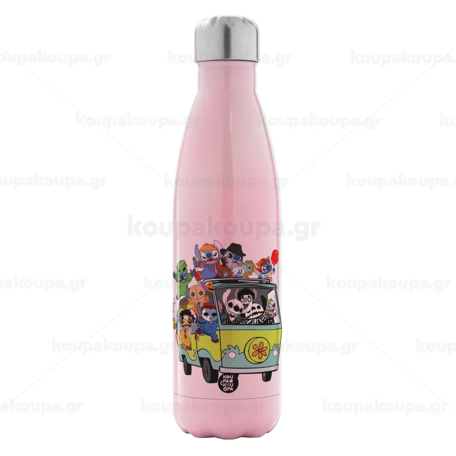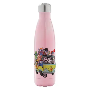 Stitch Halloween scooby car, Μεταλλικό παγούρι θερμός Ροζ Ιριδίζον (Stainless steel), διπλού τοιχώματος, 500ml