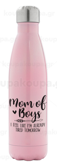 Mom of boys i feel like im already tired tomorrow, Μεταλλικό παγούρι θερμός Ροζ Ιριδίζον (Stainless steel), διπλού τοιχώματος, 500ml