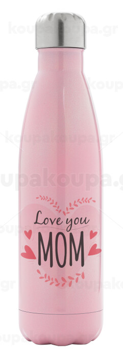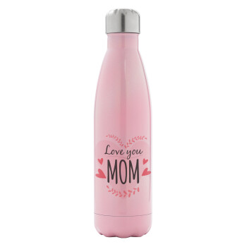 Mother's day I Love you Mom heart, Μεταλλικό παγούρι θερμός Ροζ Ιριδίζον (Stainless steel), διπλού τοιχώματος, 500ml