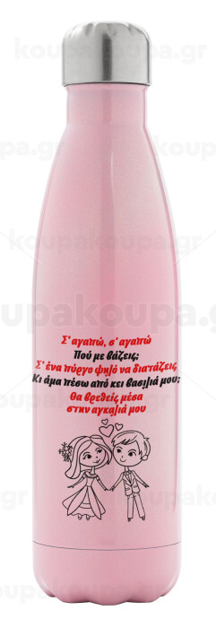 Σ΄ αγαπώ σ΄ αγαπώ που με βάζεις, Μεταλλικό παγούρι θερμός Ροζ Ιριδίζον (Stainless steel), διπλού τοιχώματος, 500ml