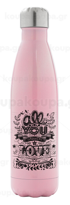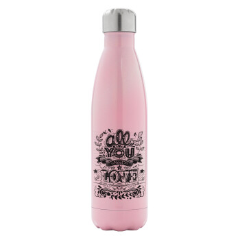 All you need is love, Μεταλλικό παγούρι θερμός Ροζ Ιριδίζον (Stainless steel), διπλού τοιχώματος, 500ml