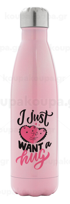 I Just want a hug!, Μεταλλικό παγούρι θερμός Ροζ Ιριδίζον (Stainless steel), διπλού τοιχώματος, 500ml