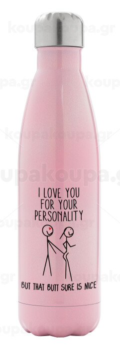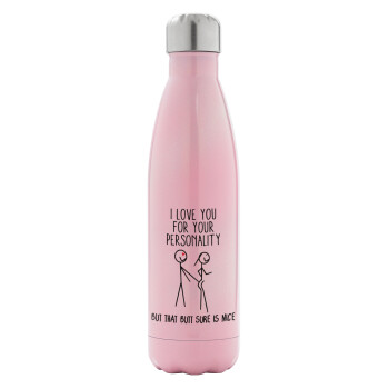 I Love you for your personality, Μεταλλικό παγούρι θερμός Ροζ Ιριδίζον (Stainless steel), διπλού τοιχώματος, 500ml