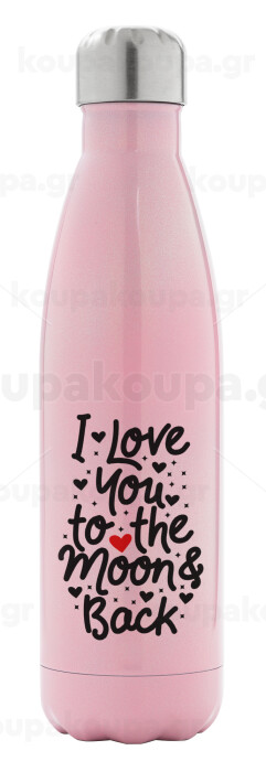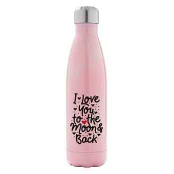 I love you to the moon and back with hearts, Μεταλλικό παγούρι θερμός Ροζ Ιριδίζον (Stainless steel), διπλού τοιχώματος, 500ml