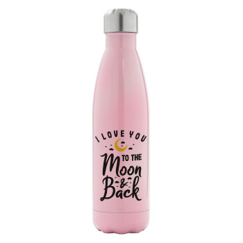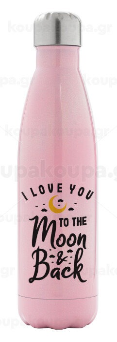 I love you to the moon and back, Μεταλλικό παγούρι θερμός Ροζ Ιριδίζον (Stainless steel), διπλού τοιχώματος, 500ml