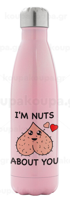 I'm Nuts About You, Μεταλλικό παγούρι θερμός Ροζ Ιριδίζον (Stainless steel), διπλού τοιχώματος, 500ml