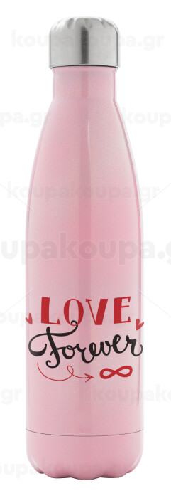 Love forever ∞, Μεταλλικό παγούρι θερμός Ροζ Ιριδίζον (Stainless steel), διπλού τοιχώματος, 500ml
