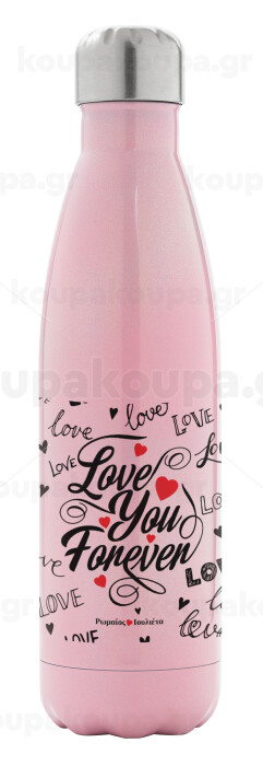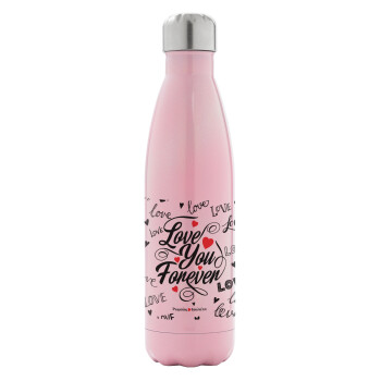 Love You Forever, Μεταλλικό παγούρι θερμός Ροζ Ιριδίζον (Stainless steel), διπλού τοιχώματος, 500ml