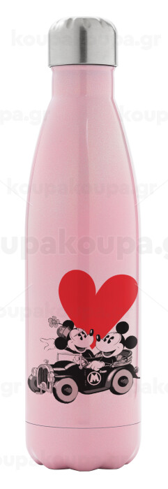 Mickey & Minnie love car, Μεταλλικό παγούρι θερμός Ροζ Ιριδίζον (Stainless steel), διπλού τοιχώματος, 500ml