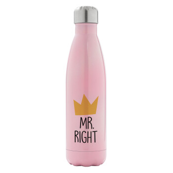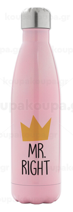 Mr right, Μεταλλικό παγούρι θερμός Ροζ Ιριδίζον (Stainless steel), διπλού τοιχώματος, 500ml