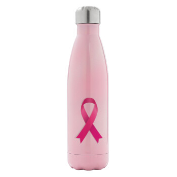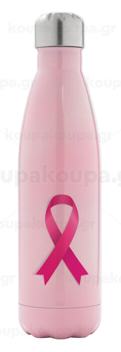 Παγκόσμια Ημέρα κατά του Καρκίνου, Μεταλλικό παγούρι θερμός Ροζ Ιριδίζον (Stainless steel), διπλού τοιχώματος, 500ml