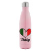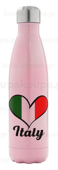 Italy flag, Μεταλλικό παγούρι θερμός Ροζ Ιριδίζον (Stainless steel), διπλού τοιχώματος, 500ml