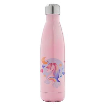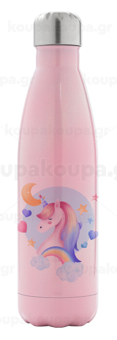 Μονόκερος, Μεταλλικό παγούρι θερμός Ροζ Ιριδίζον (Stainless steel), διπλού τοιχώματος, 500ml