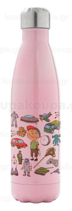 Toys Boy, Μεταλλικό παγούρι θερμός Ροζ Ιριδίζον (Stainless steel), διπλού τοιχώματος, 500ml