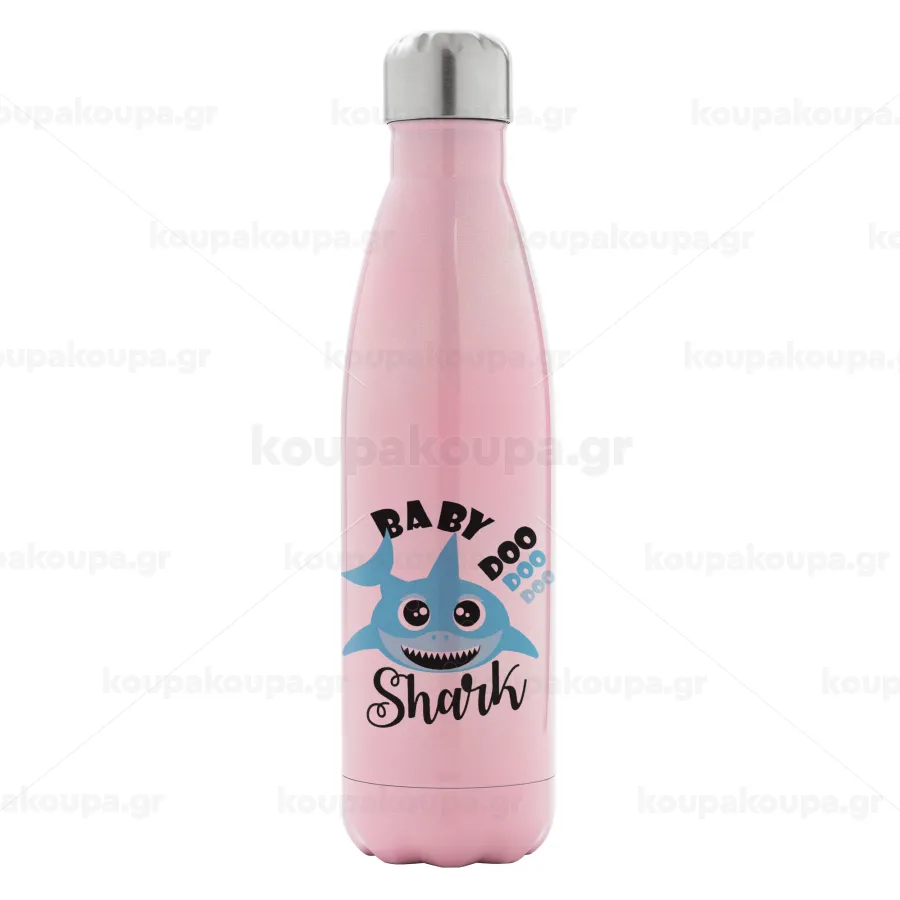 Baby Shark (boy), Μεταλλικό παγούρι θερμός Ροζ Ιριδίζον (Stainless steel), διπλού τοιχώματος, 500ml