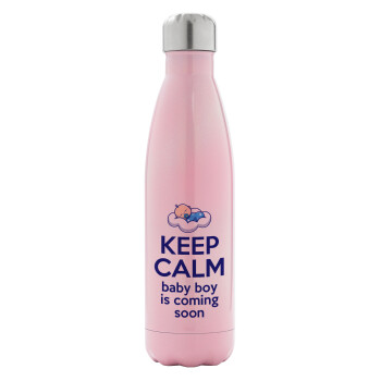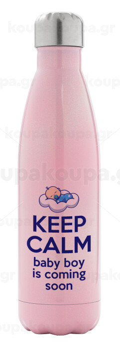 KEEP CALM baby boy is coming soon!!!, Μεταλλικό παγούρι θερμός Ροζ Ιριδίζον (Stainless steel), διπλού τοιχώματος, 500ml