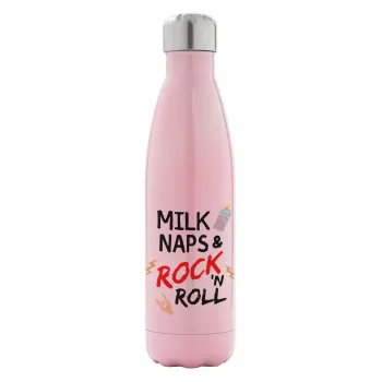 milk naps and Rock n' Roll, Μεταλλικό παγούρι θερμός Ροζ Ιριδίζον (Stainless steel), διπλού τοιχώματος, 500ml