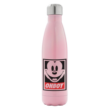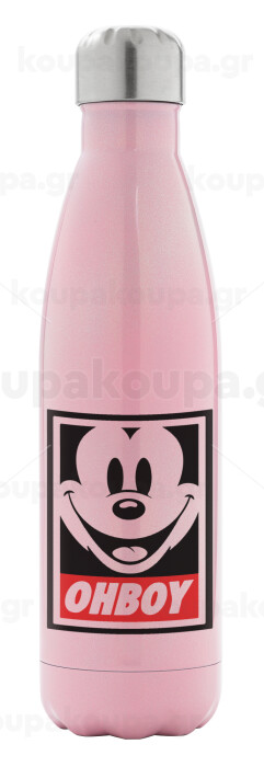 Oh boy μίκυ, Μεταλλικό παγούρι θερμός Ροζ Ιριδίζον (Stainless steel), διπλού τοιχώματος, 500ml