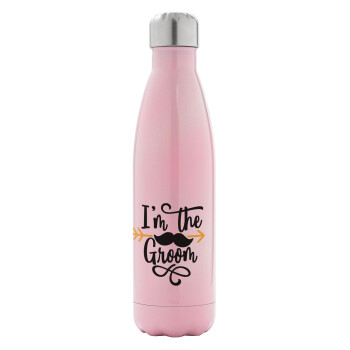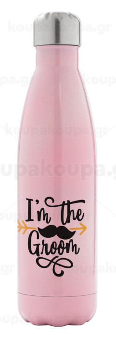 I'm the groom mustache, Μεταλλικό παγούρι θερμός Ροζ Ιριδίζον (Stainless steel), διπλού τοιχώματος, 500ml