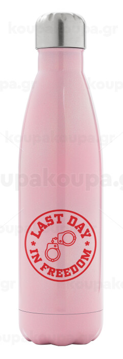 Last day freedom, Μεταλλικό παγούρι θερμός Ροζ Ιριδίζον (Stainless steel), διπλού τοιχώματος, 500ml