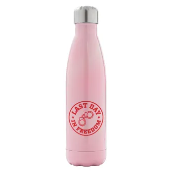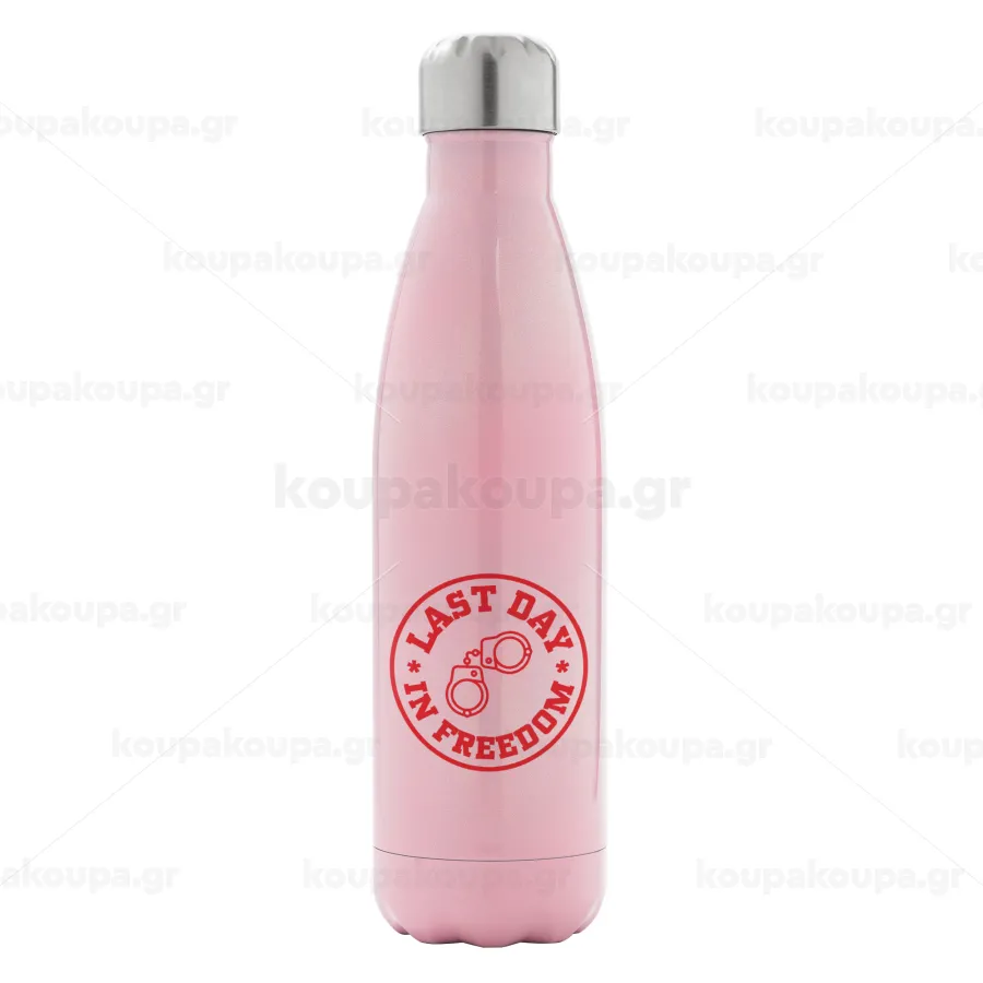 Last day freedom, Μεταλλικό παγούρι θερμός Ροζ Ιριδίζον (Stainless steel), διπλού τοιχώματος, 500ml