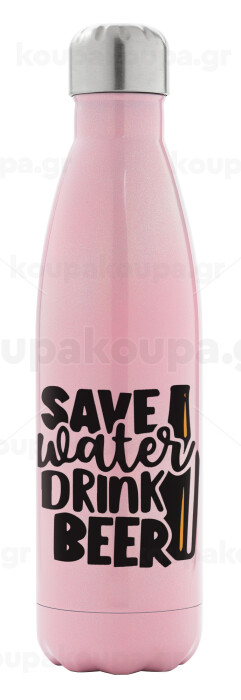 Save Water, Drink BEER, Μεταλλικό παγούρι θερμός Ροζ Ιριδίζον (Stainless steel), διπλού τοιχώματος, 500ml