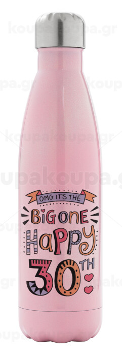 Big one Happy 30th, Μεταλλικό παγούρι θερμός Ροζ Ιριδίζον (Stainless steel), διπλού τοιχώματος, 500ml