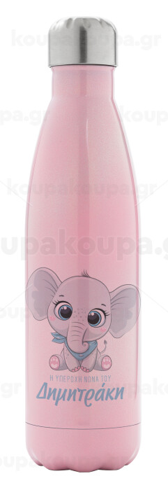 Η νονά μου, ελεφαντάκι γαλάζιο, Μεταλλικό παγούρι θερμός Ροζ Ιριδίζον (Stainless steel), διπλού τοιχώματος, 500ml