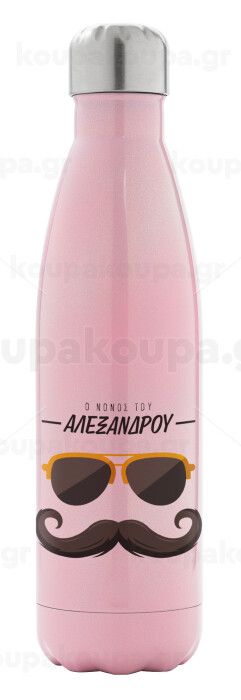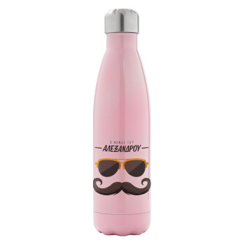 Ο νονός μου, μουστάκι με γυαλιά, Μεταλλικό παγούρι θερμός Ροζ Ιριδίζον (Stainless steel), διπλού τοιχώματος, 500ml